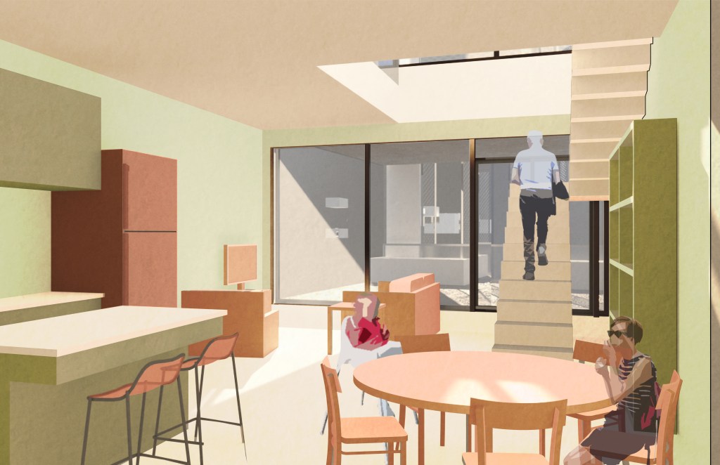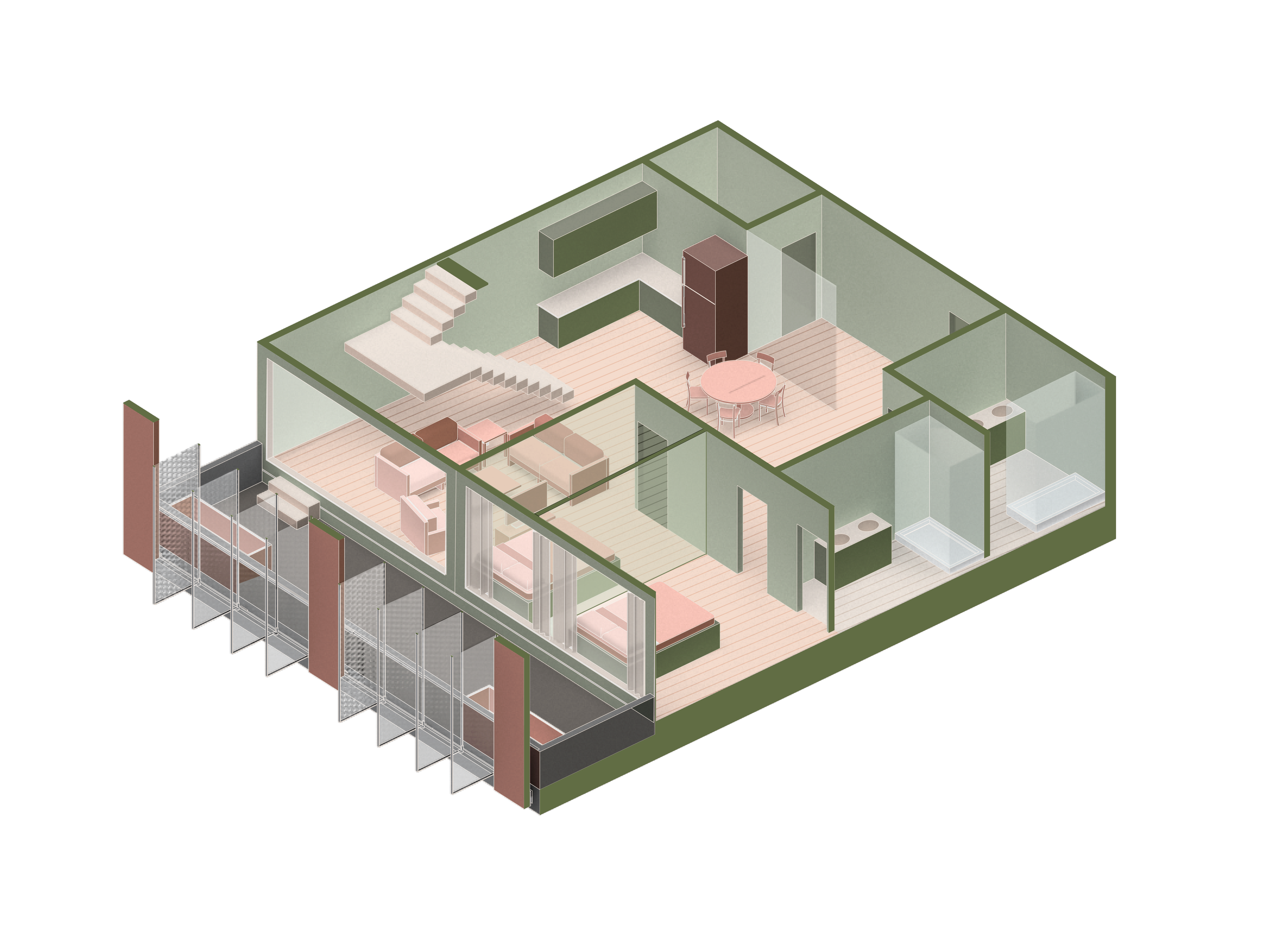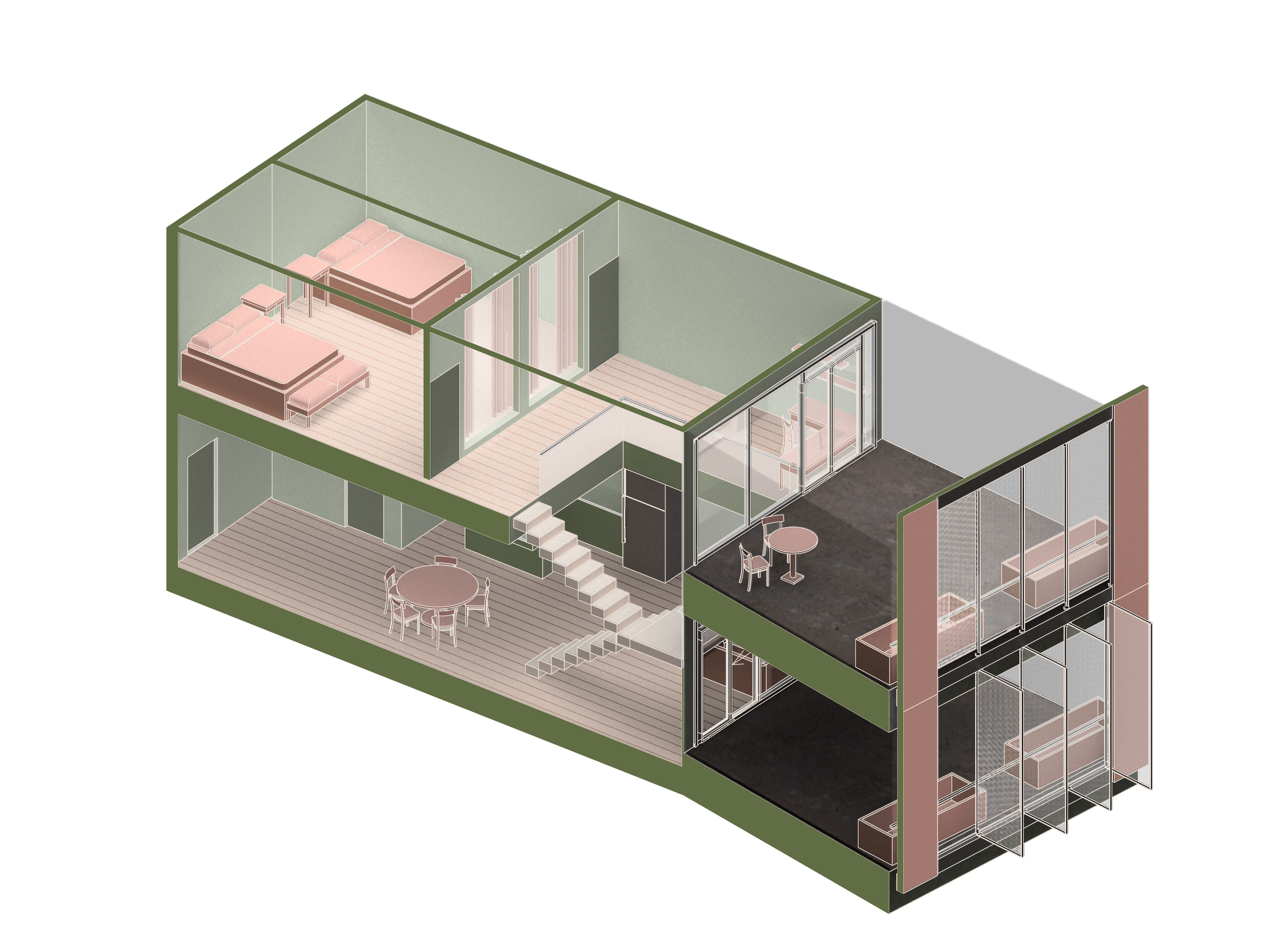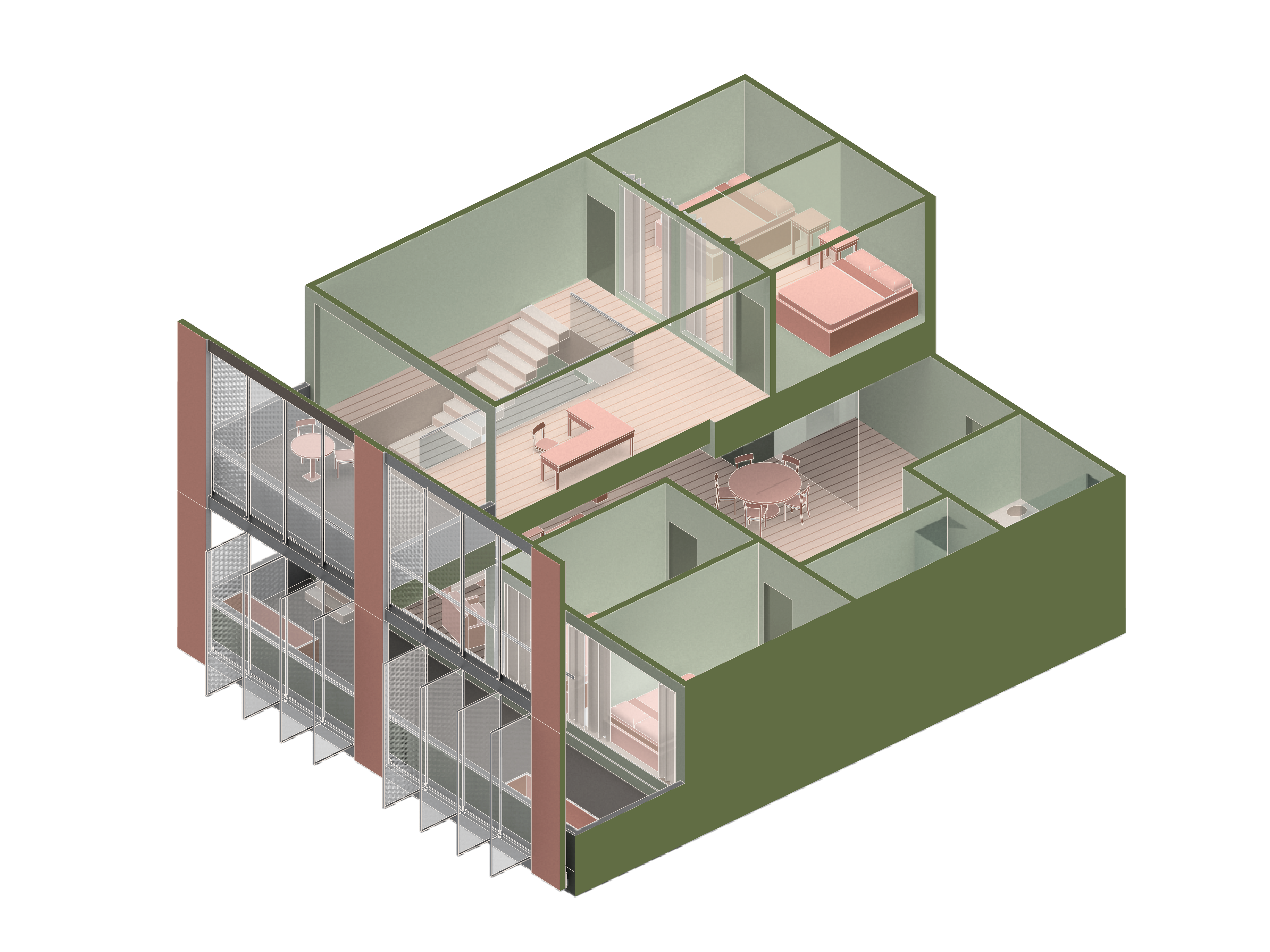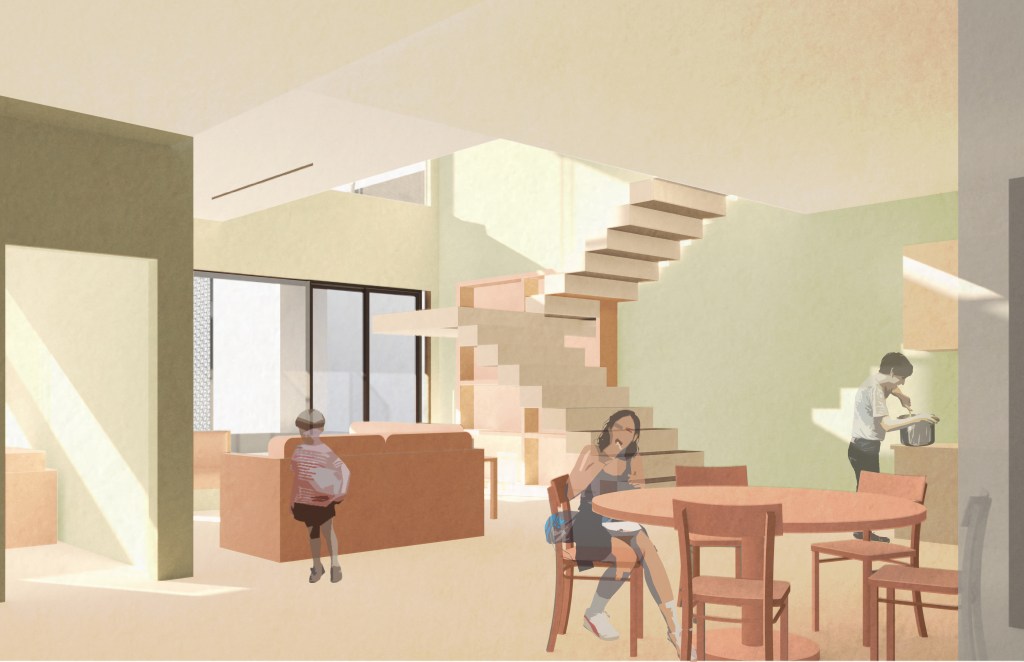 Located in Toronto, ON, Garden House was a design for a multi-use residential housing complex, containing a variety of studio, 1 and 2 bedroom units. It presents an austere facade to the busy urban street, but opens southward into a series of roof terraces, creating a lush space for residents to gather. Additionally, the complex contains community spaces, such as a gym and events space, as well as retail along the ground level.