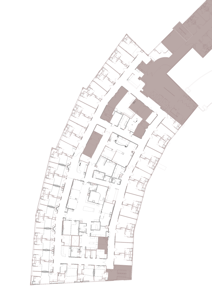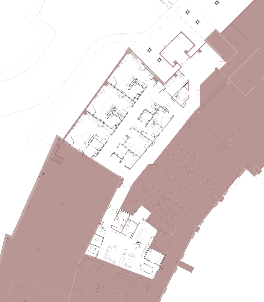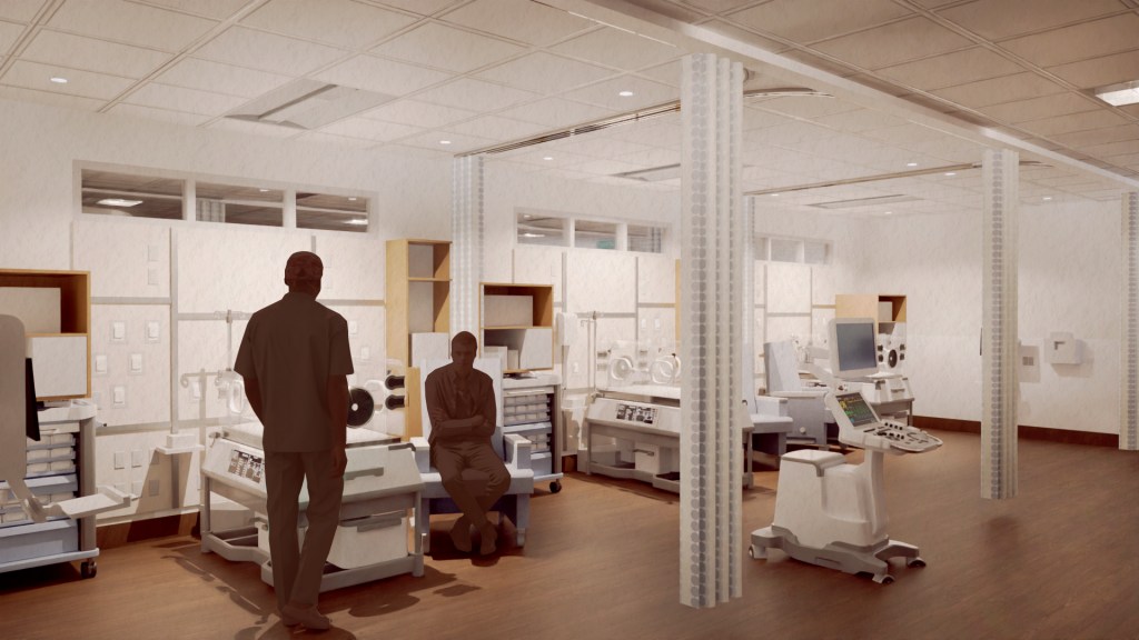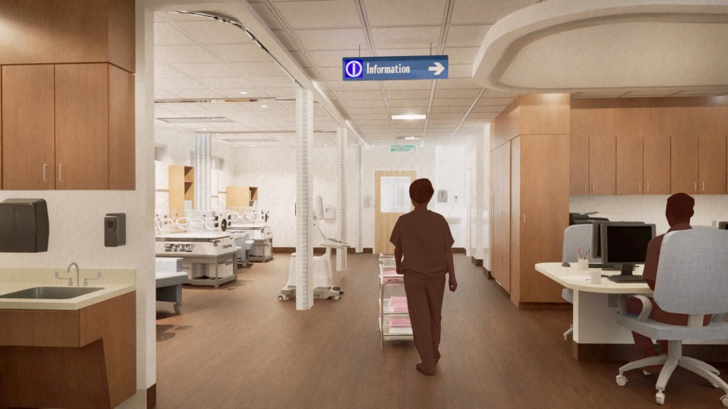 The NICU portion of the renovations expanded an existing, cramped NICU space into an entire floor of both private and shared NICU rooms. Where before there were only shared NICU bays in one small area of the wing, the renovations transformed the rest of the existing floor, formerly labor and delivery rooms, into 15 new private NICU rooms, 6 new shared rooms, and 3 open NICU bays.
