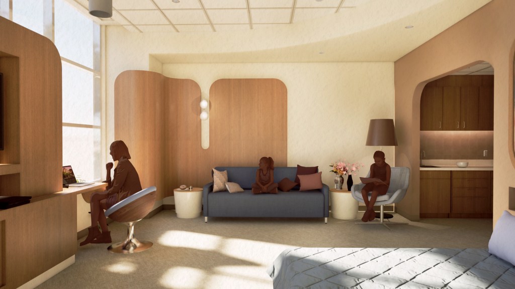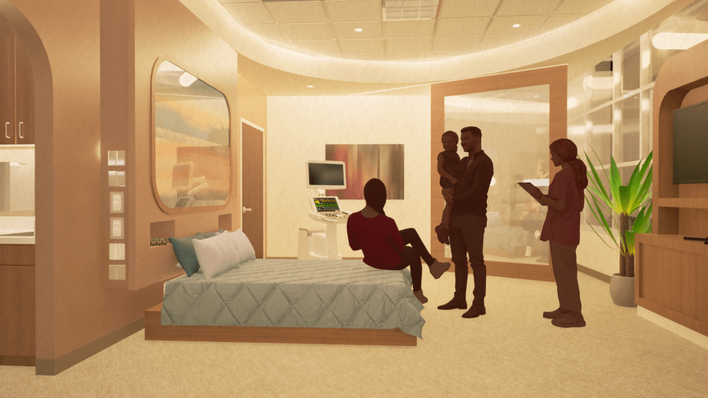 Mount Carmel Saint Anne’s Women’s Pavilion was a design for a 55,005 SF renovation to an existing hospital in Westerville, OH. The project consisted of renovations to an existing NICU alongside the additions of a Low Intervention Birthing Center, a Ronald Mcdonald House Lounge, a new entrance canopy, and an overall refresh of finishes to the entire wing. The project allowed for some unique design opportunities within the usually rigid boundaries of a healthcare facility, prioritizing the creation of comforting and warm spaces for families to bring their children into the world.