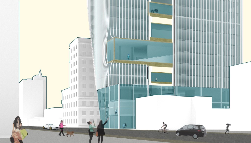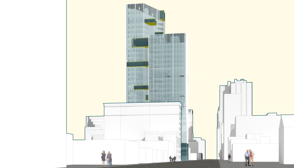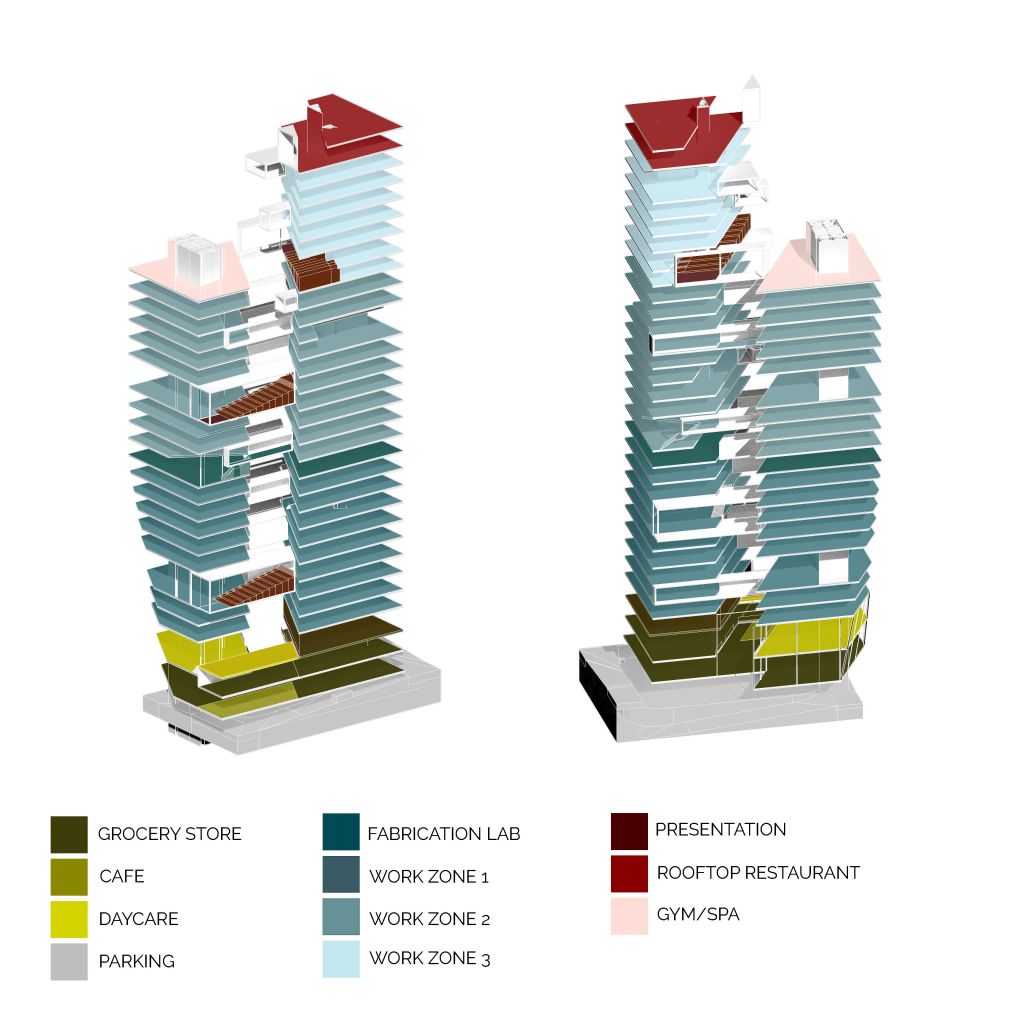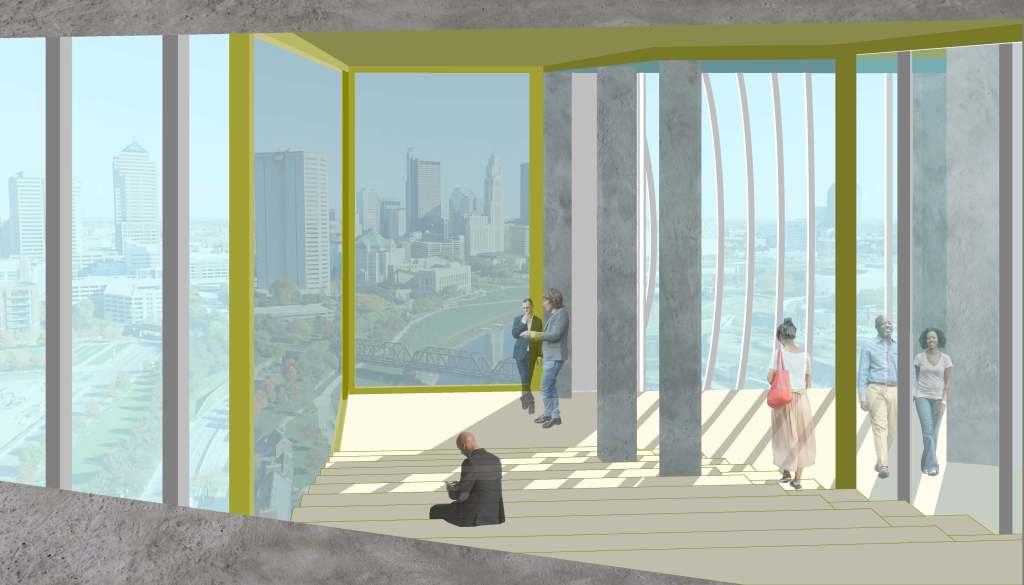 Located in Columbus, OH, on the corner of East Broad St. and S. Grant Ave., the MMillipede Tower is an office building containing underground parking, a daycare, retail space, a rooftop restaurant, and a variety of unique spaces throughout its 32 levels. Possessing a sleek verticality emphasized by its exterior mullion system, a series of horizontal tubes span the two towers, allowing for circulation routes and spaces for gathering.